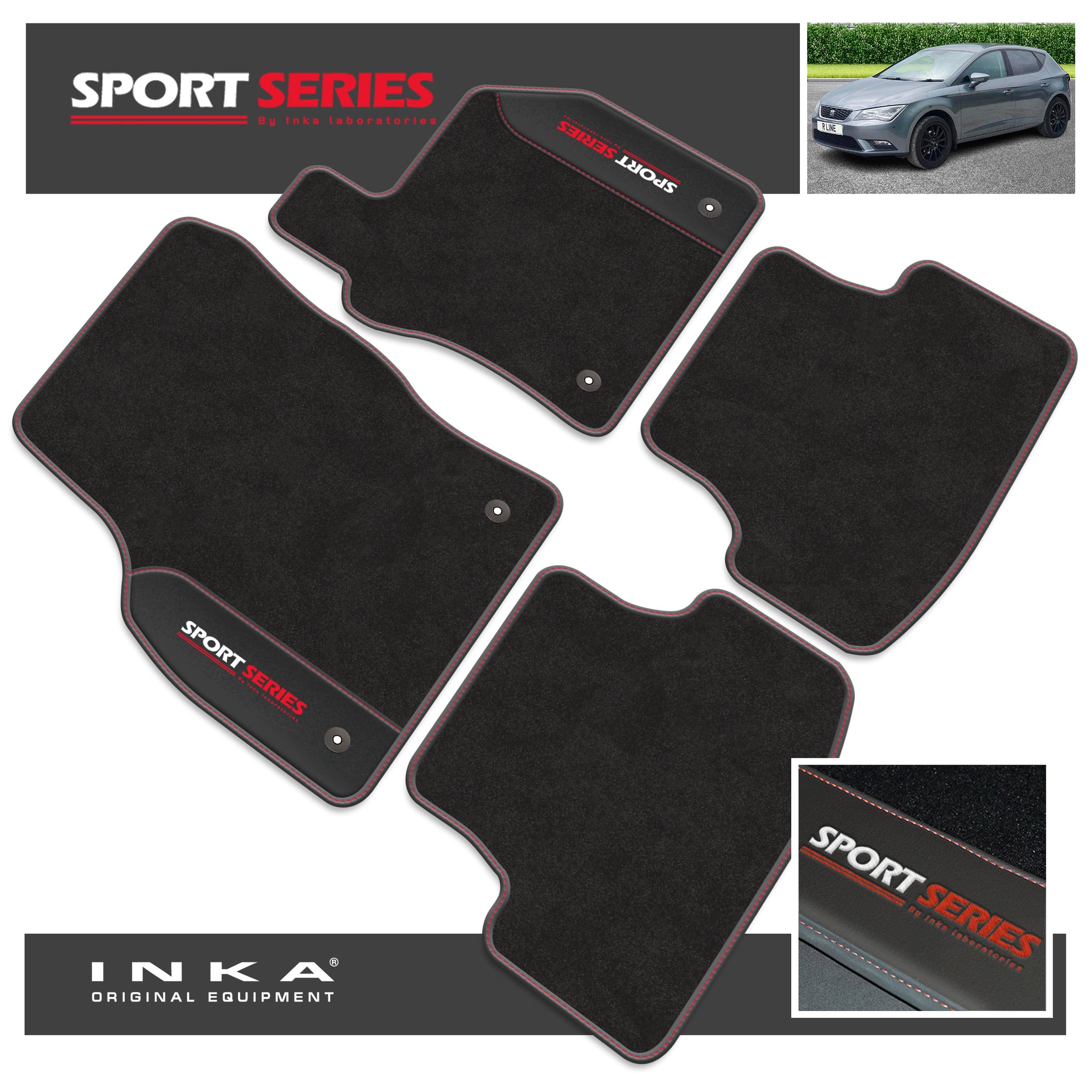 SEAT Leon - 2020 Onwards- Tailored Car Mat Set (Front & Rear 4pcs) In OEM grade carpet pile with black piping & Contrast Stitching - With SPORT SERIES EMB