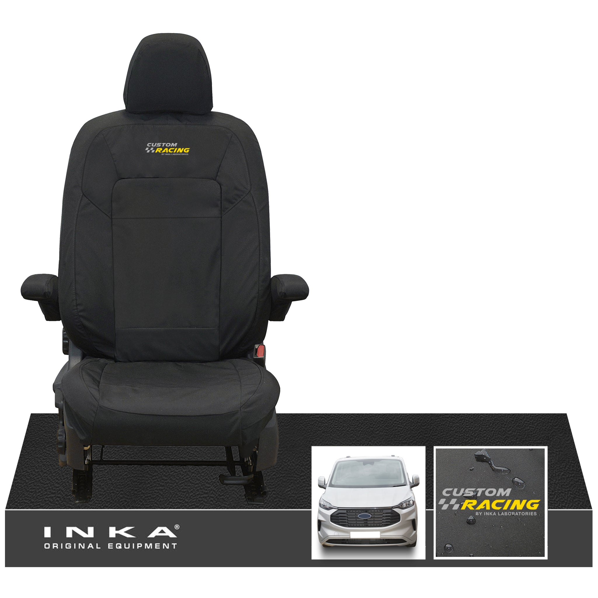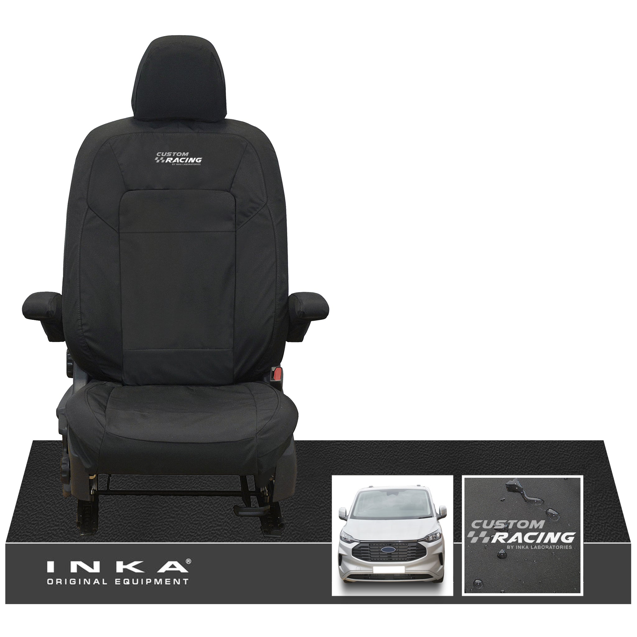 : This Item Can Be returnedThe All New Ford Transit Custom INKA Front Single Driver Tailored Waterproof Seat Cover Black MK2 MY-2024+ With Embroidered Logo [Choice of 7 Colours]