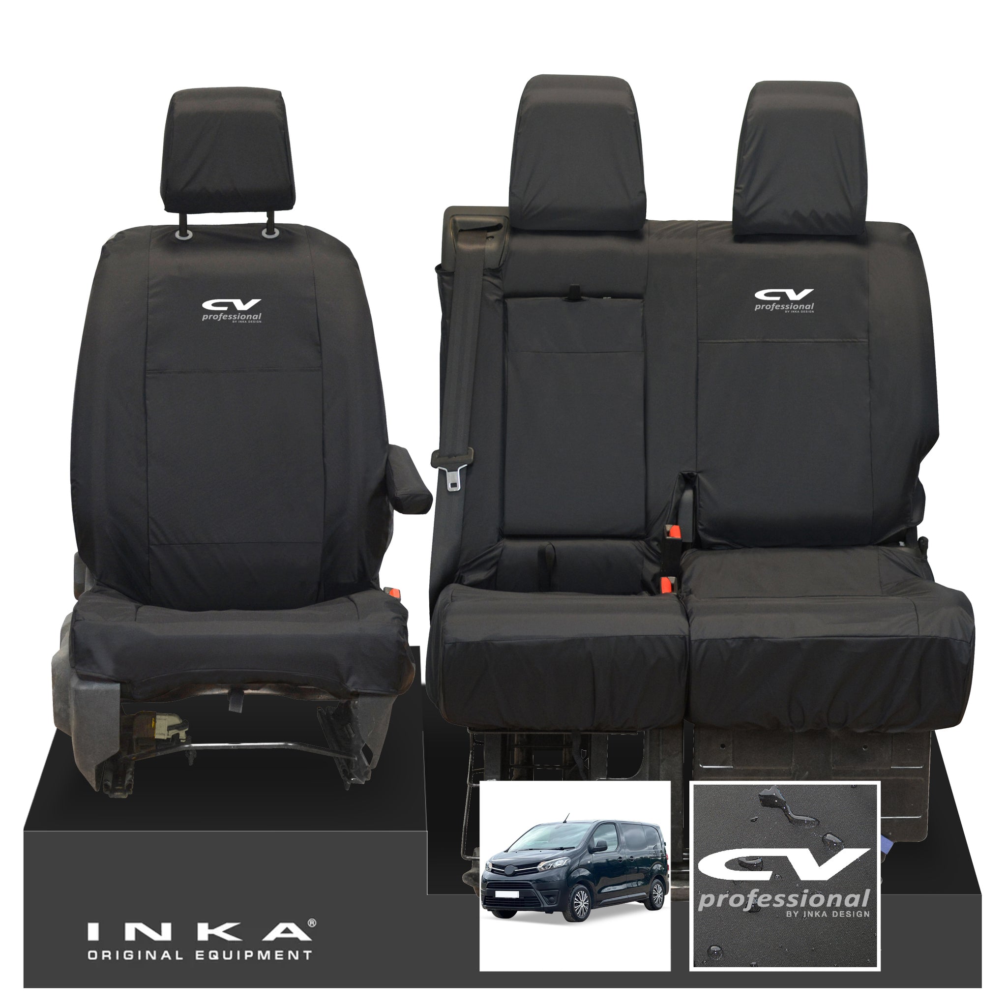 Toyota Proace INKA Front 1+2 Tailored Waterproof Seat Covers Black MY16 onwards