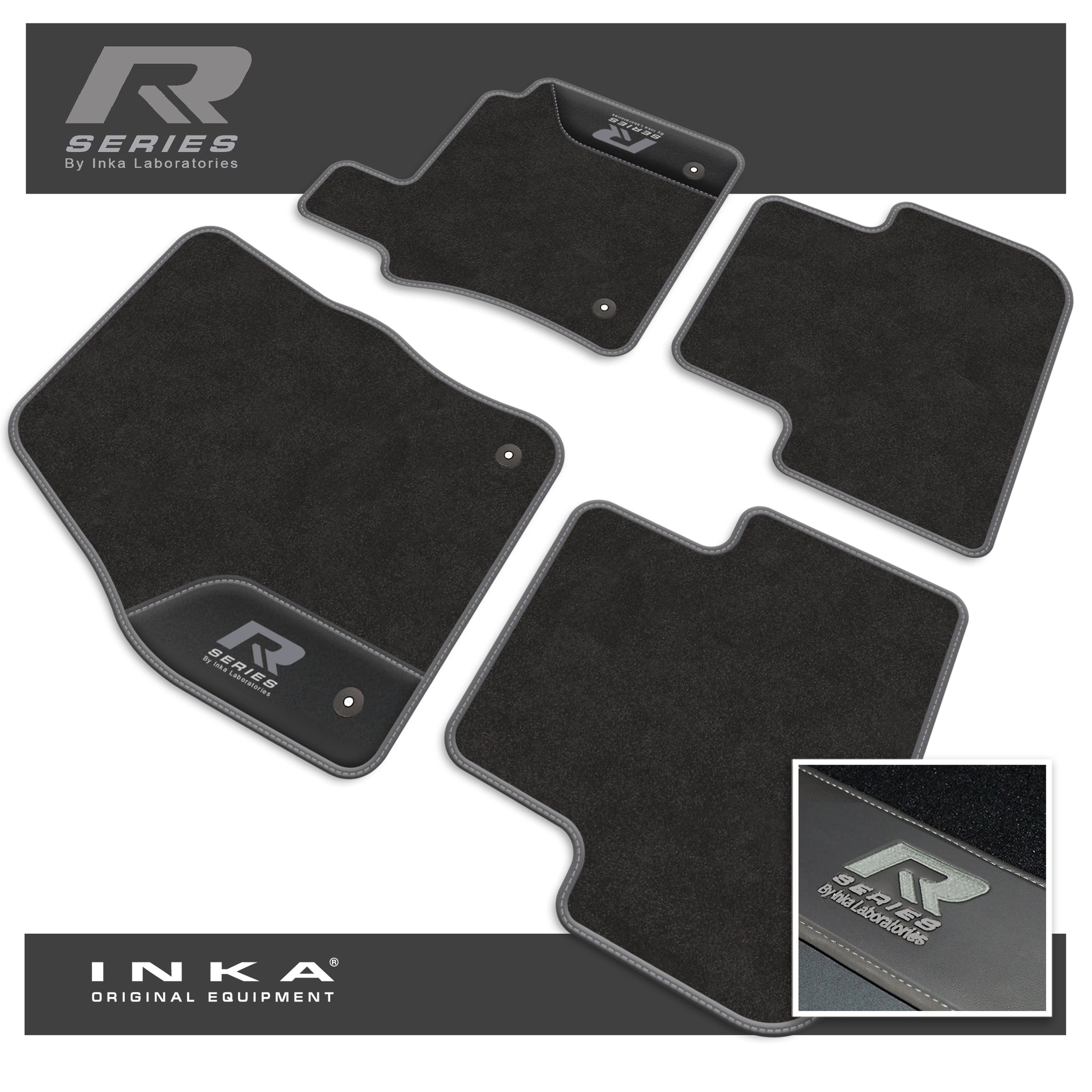 : This Item Can Be returnedVOLKSWAGEN TIGUAN - MY2013-2023 Tailored Car Mat Set (Front & Rear 4pcs) In OEM grade carpet pile with leatherette inserts and matching piping with black stitching With R SERIES EMB